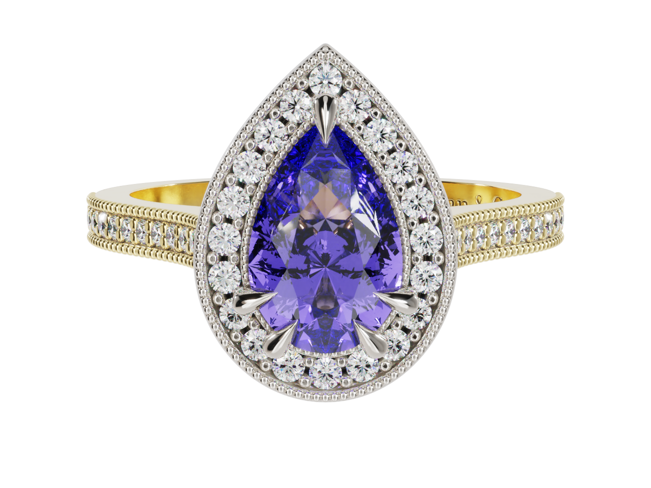 Pear Millgrain Gemstone Ring