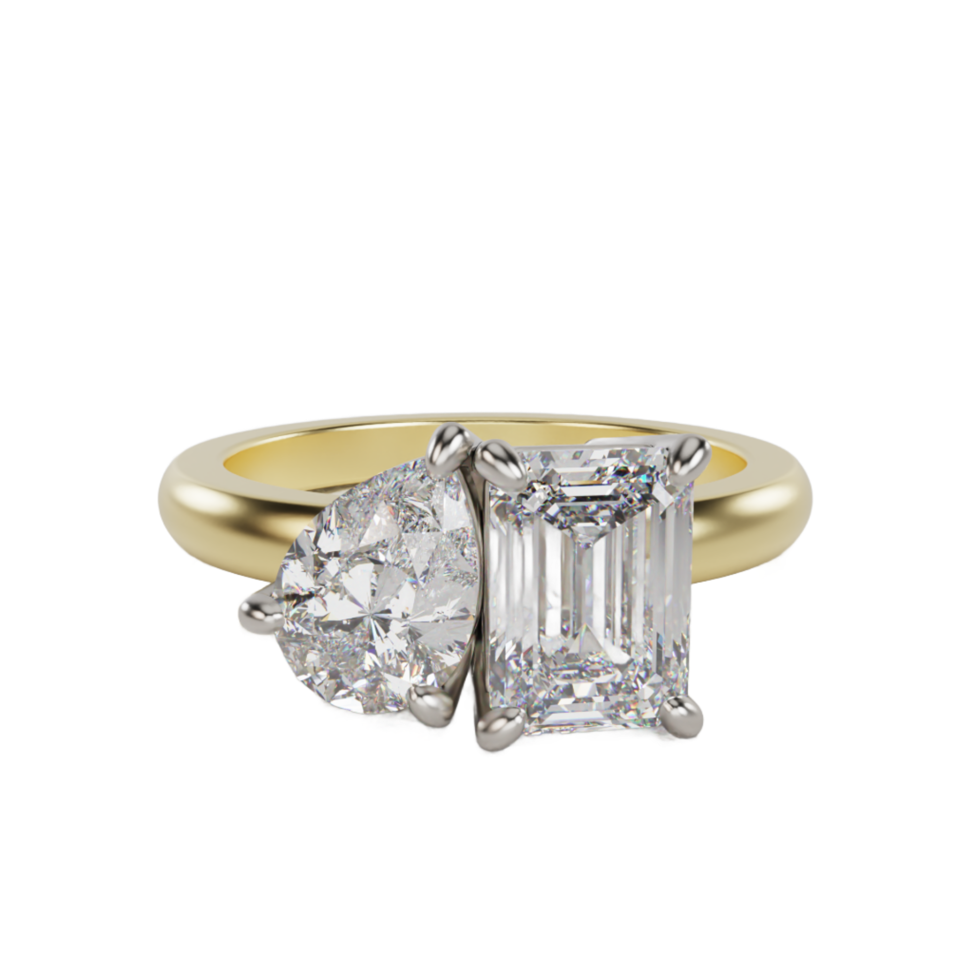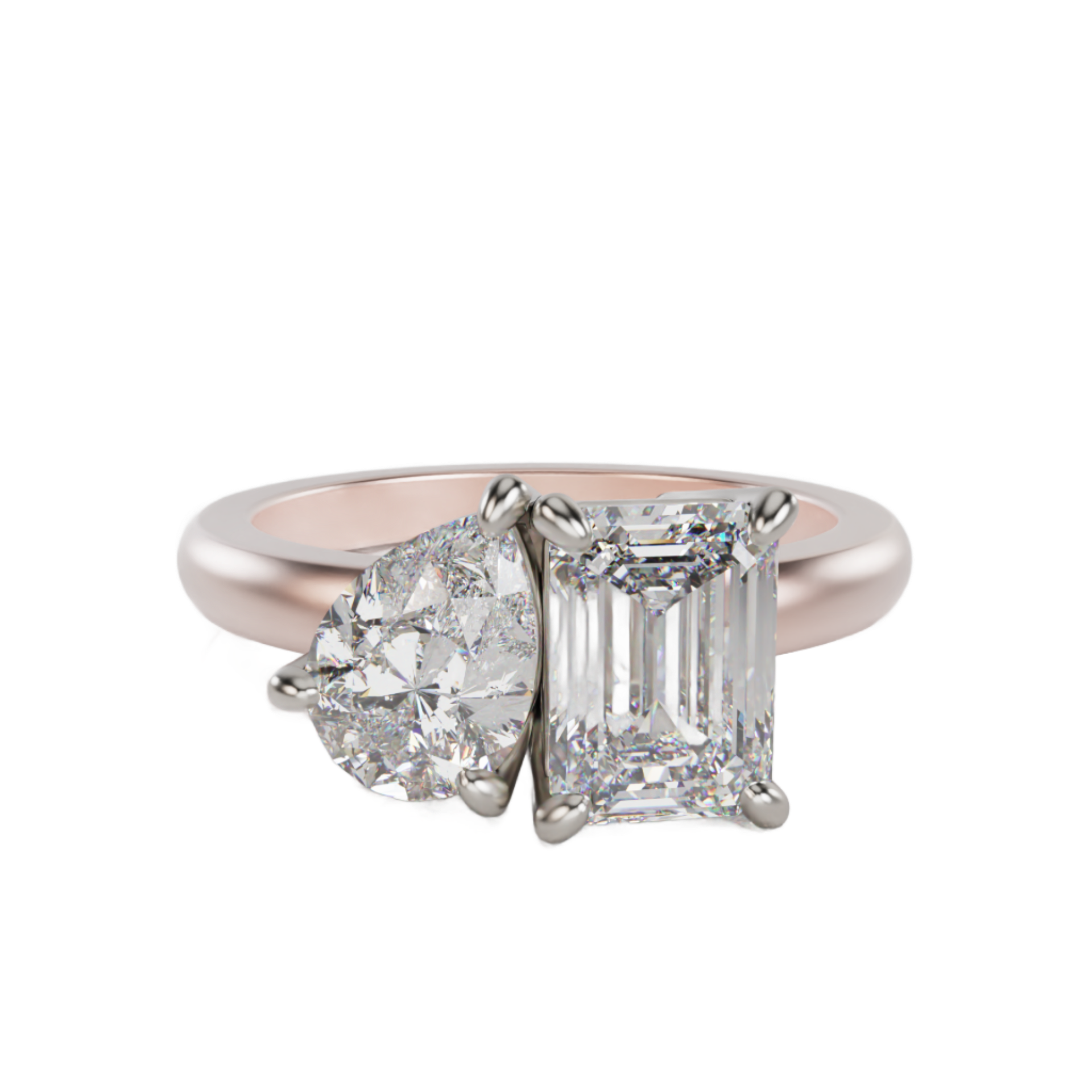 Pear Emerald Cut Toi et Moi Lab Grown Diamond Ring French for 'You & Me'